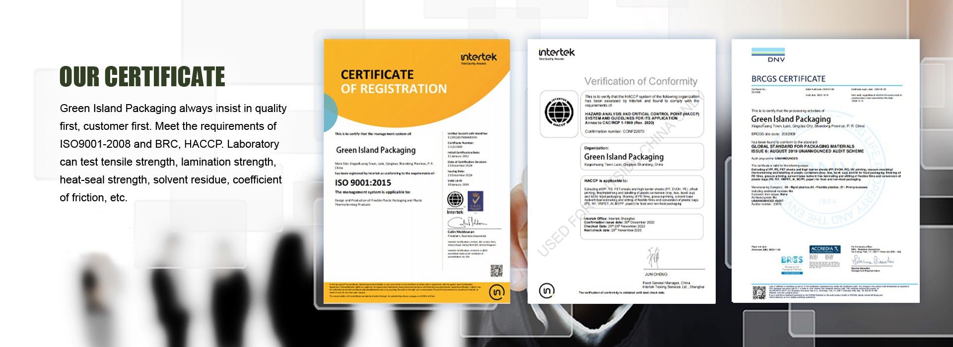 We have achieved highest standard in ISO9001, BRC, and HACCP. Our QA team, supported by an in-house laboratory ensures top performance of our packaging through rigorous monitoring and testing to make sure our packaging meets our customer requirements.
